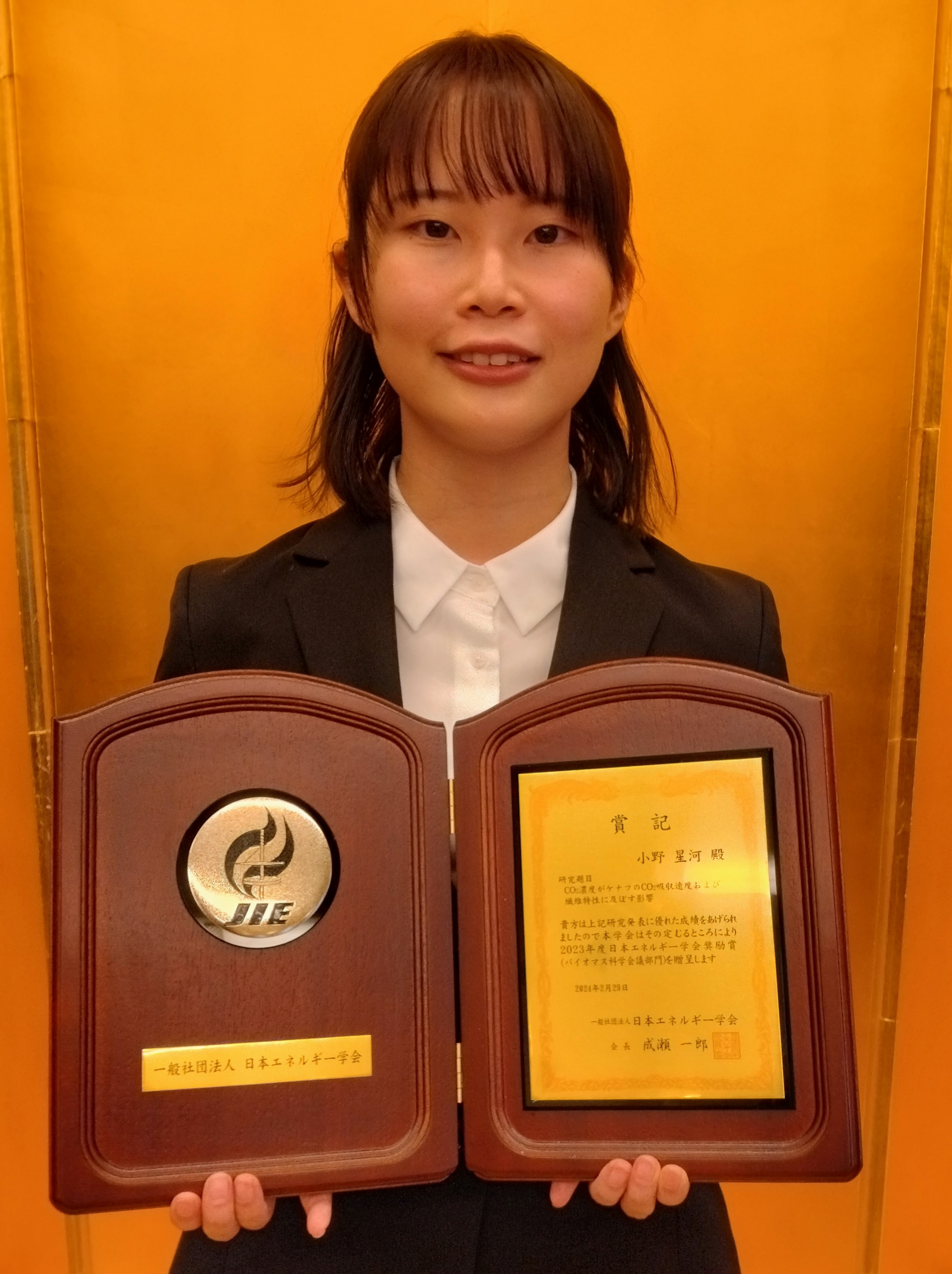 2024.2.29 M2の小野星河さんが、2023年度日本エネルギー学会奨励賞を受賞しました!!